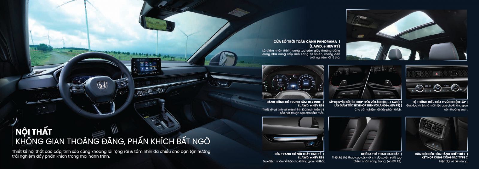 – Các tính năng an toàn chủ động bao gồm: hệ thống quan sát làn đường Honda LaneWatch (phiên bản L, L AWD, e:HEV RS), tính năng hỗ trợ đổ đèo (HDC), hệ thống hỗ trợ đánh lái chủ động (AHA), hệ thống cảnh báo áp suất lốp (TPMS), hệ thống cánh báo chống buồn ngủ (DAM), camera 360 độ (phiên bản L AWD, e:HEV RS), cảm biến sau, cảm biến trước (phiên bản e:HEV RS), cảm biến gạt mưa tự động (phiên bản L, L AWD, e:HEV RS), camera lùi, tính năng nhắc nhở kiểm tra hàng ghế sau.