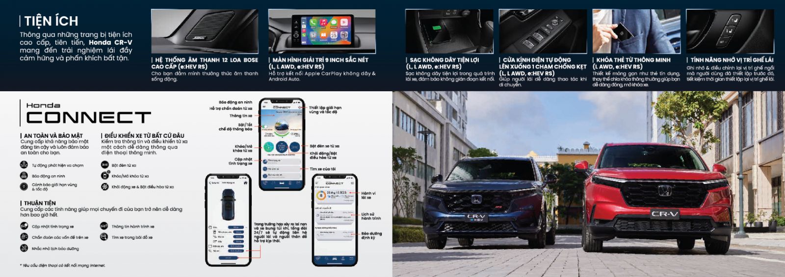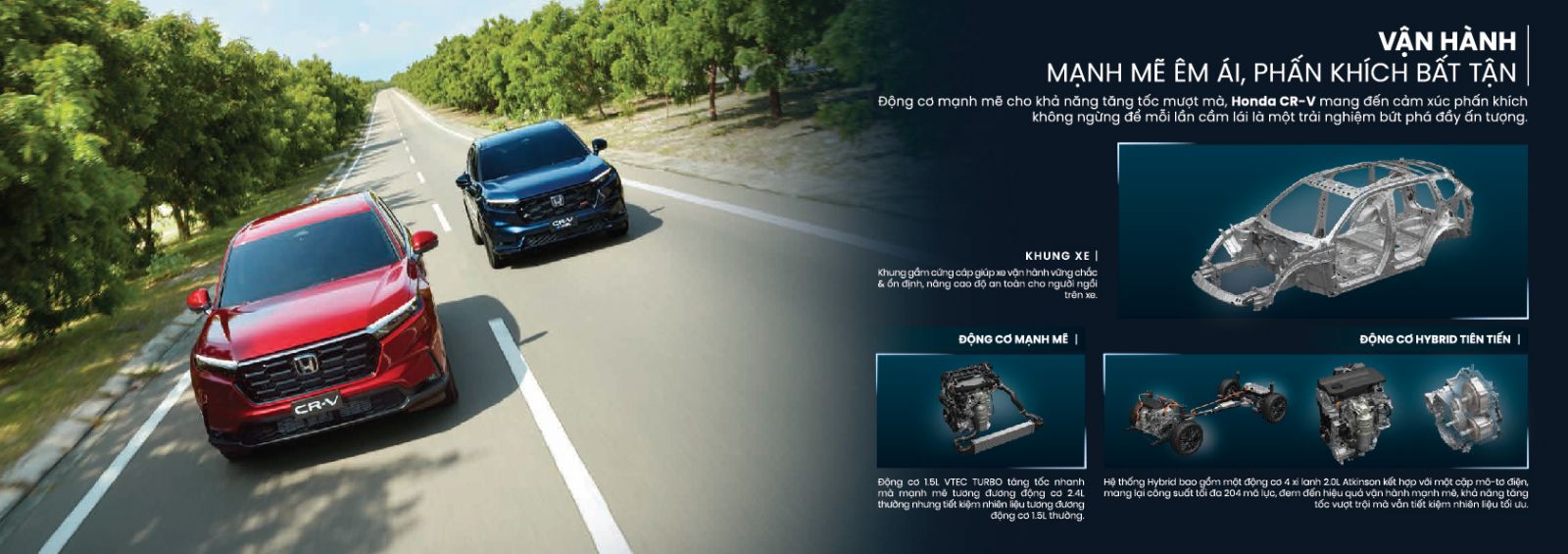 – Các tính năng an toàn bị động bao gồm: hệ thống 8 túi khí gồm: túi khí trước, túi khí rèm và cả túi khí cho đầu gối ở hàng ghế trước. Mẫu xe đã chính thức đạt chứng nhận An toàn 5 sao trong thử nghiệm va chạm được tiến hành bởi Chương trình đánh giá xe mới khuvực Đông Nam Á (ASEAN NCAP). Những tính năng an toàn này chắc chắn sẽ giúp chủ sở hữu CR-V yên tâm cầm lái để chinh phục mọi cung đường.